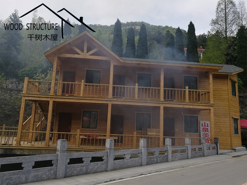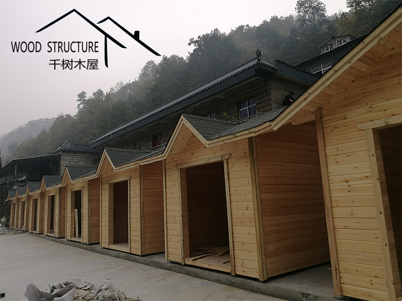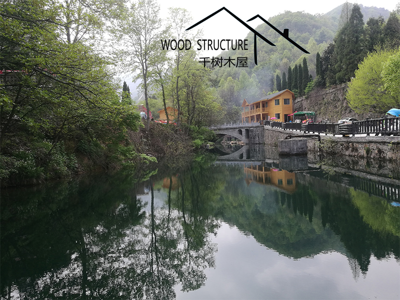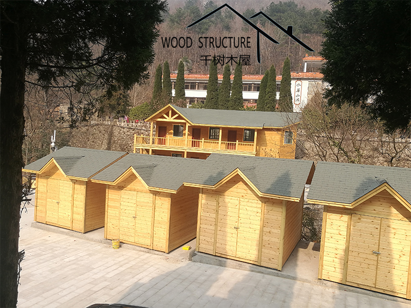 風(fēng)景名勝區(qū)的復(fù)式辦公樓木屋和20個(gè)售賣小木屋由河南千樹木業(yè)有限公司(以下簡稱千樹木屋)設(shè)計(jì)并建造。