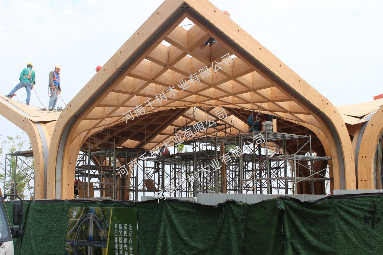 項目參數(shù):花旗松雙曲面膠合木框架,建筑面積260平米