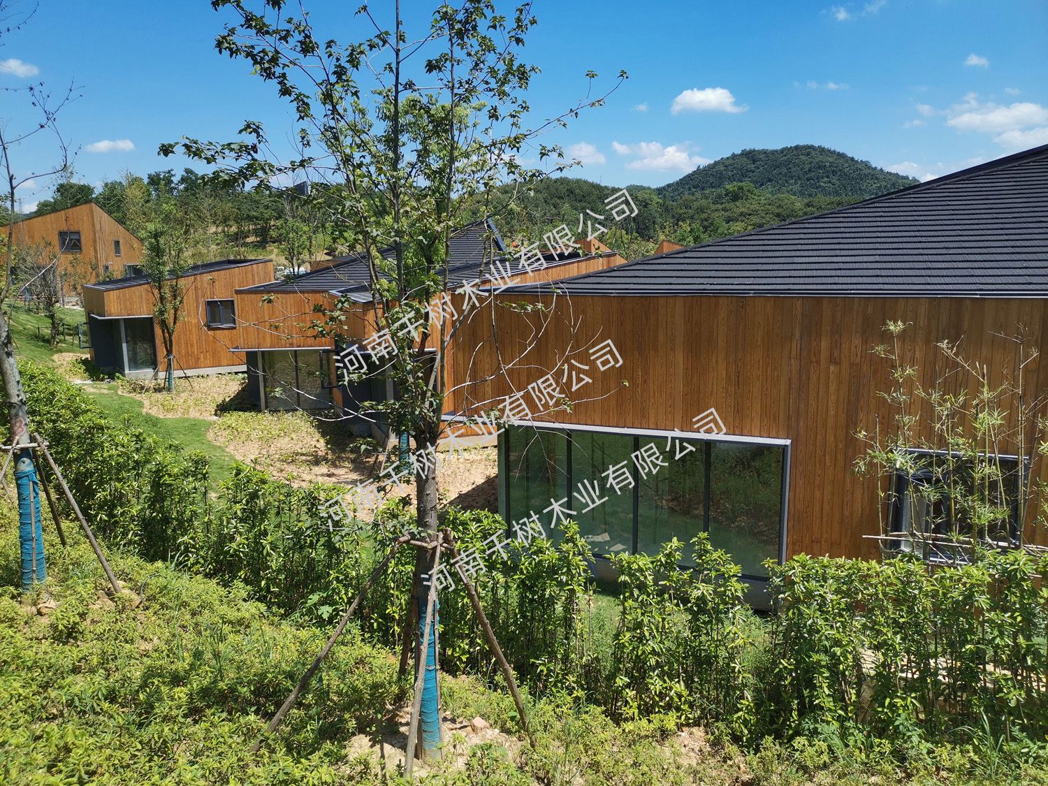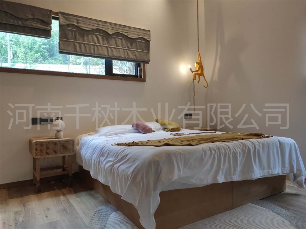 該項目2019年開工,2020年五一期間景區(qū)試營業(yè),民宿木屋選址根據(jù)地形錯落有致。選材精良,內(nèi)設精致。
