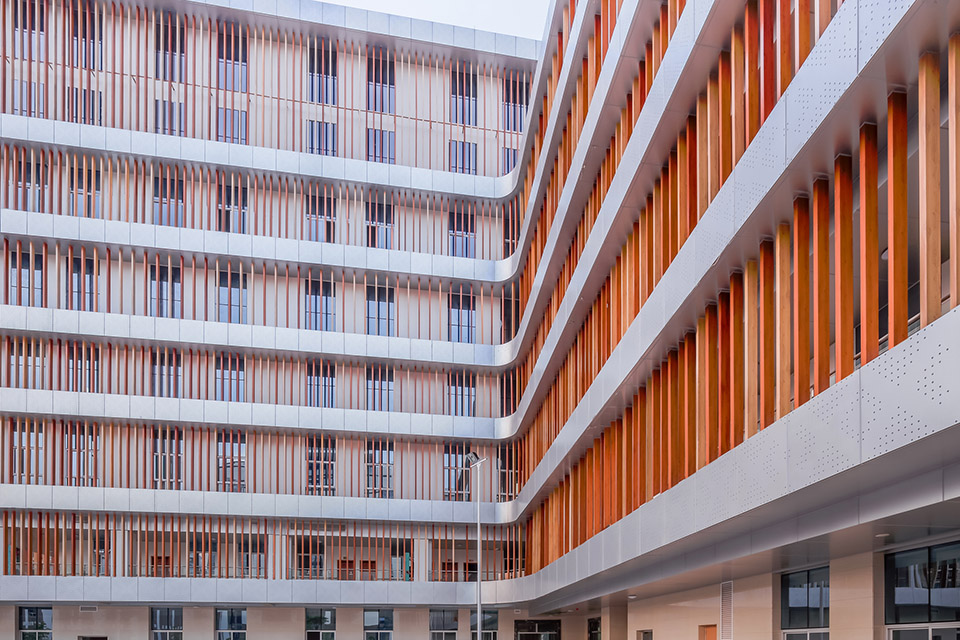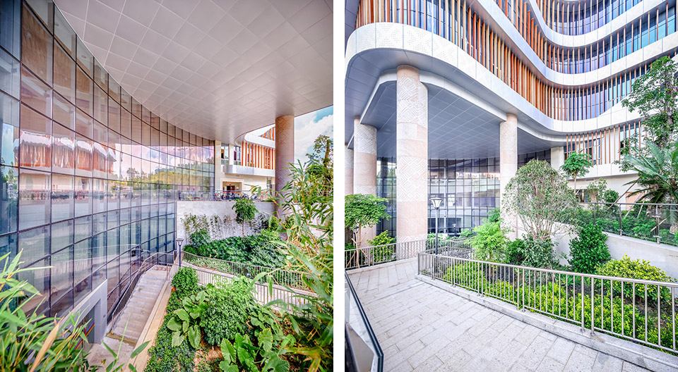 時境建筑的廣西老干部活動中心項目結(jié)合地貌的變化,嘗試將本地傳統(tǒng)的竹木結(jié)構(gòu)建筑原型通過當(dāng)代技術(shù)轉(zhuǎn)譯為現(xiàn)代空間,變化的遮陽板肌理暗合了本土手工印象,創(chuàng)造了豐富的室內(nèi)與室外的空間體驗。