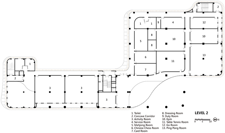 建筑的理念根源于對項目背后的人文內(nèi)涵的思考:建筑師希望要創(chuàng)造一個適于退休人員的空間,而這些退休者的青年時期大多是在文革中度過的。盡管歷史對文革的評價是負(fù)面的,但文革時期形成的“集體式生活”多少還是為那個時代留下了些溫暖的記憶。退休者對于命運(yùn)多舛的時代的歸屬感是建筑師對于現(xiàn)代生活的孤立與冷漠做出批評的立足點。