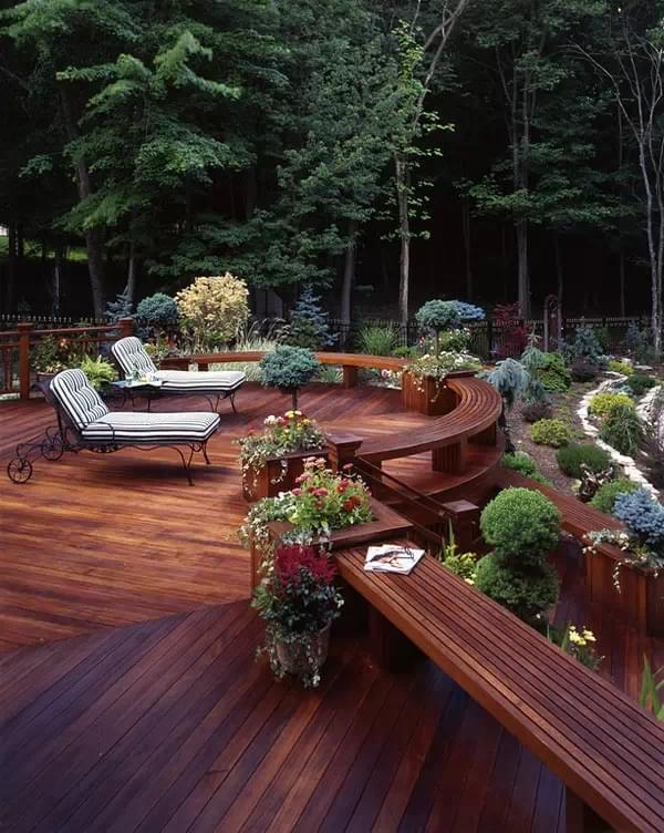 當(dāng)然了,木平臺(tái)甲板的設(shè)計(jì)風(fēng)格任由設(shè)計(jì)師發(fā)揮,可以通過添加樹木或綠廊,甲板的設(shè)計(jì)有很多種方式,下面這些案例你可以根據(jù)自己口味來重新設(shè)計(jì),現(xiàn)在開始吧,一起看看!