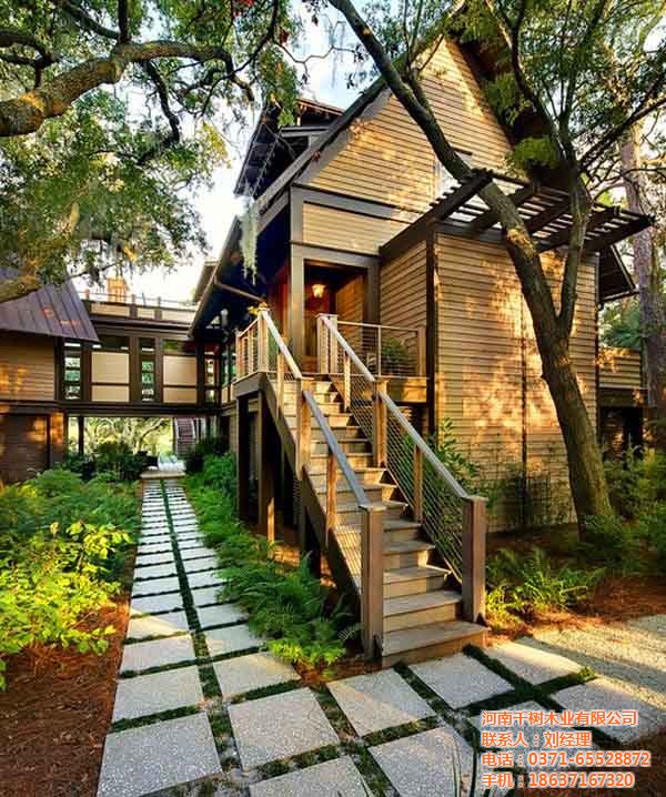 一般都會(huì)選擇歐美風(fēng)格,兩到三層結(jié)構(gòu),面積在四百平左右,因?yàn)檫@樣的木屋足可以滿(mǎn)足中國(guó)人的需求,無(wú)論是度假或是居住,無(wú)論是一家?guī)卓诨蚴桥笥褋?lái)仿都要以滿(mǎn)足.在現(xiàn)在工業(yè)化的時(shí)代,太多的化學(xué)物品占據(jù)了大多數(shù)的生活用品中,住著原木的別墅房屋,回歸大自然的懷抱也是很多人的夢(mèng)想.