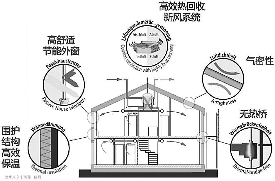 超低能耗建筑健康和舒適指的是溫度、濕度、光線、風速、室內(nèi)聲音、潔凈度和空氣健康。健康和舒適是兩個概念。就像一個人因為熱把空調(diào)調(diào)到極低的溫度,或者把電風扇調(diào)到最大的風,表面上他獲得了片刻的舒適,但他失去了健康。因此,健康和舒適必須分開提出,作為被動式房間的特征。在節(jié)能方面,被動式住宅技術(shù)是實現(xiàn)能源消耗接近零的技術(shù)體系。通過大幅度提高圍護結(jié)構(gòu)的熱工性能和氣密性,采用高效的新風熱回收技術(shù),使建筑采暖需求降低到15 kWh/(m²·a)以下。最節(jié)能的被動式超低能耗建筑,節(jié)能可達90%以上。