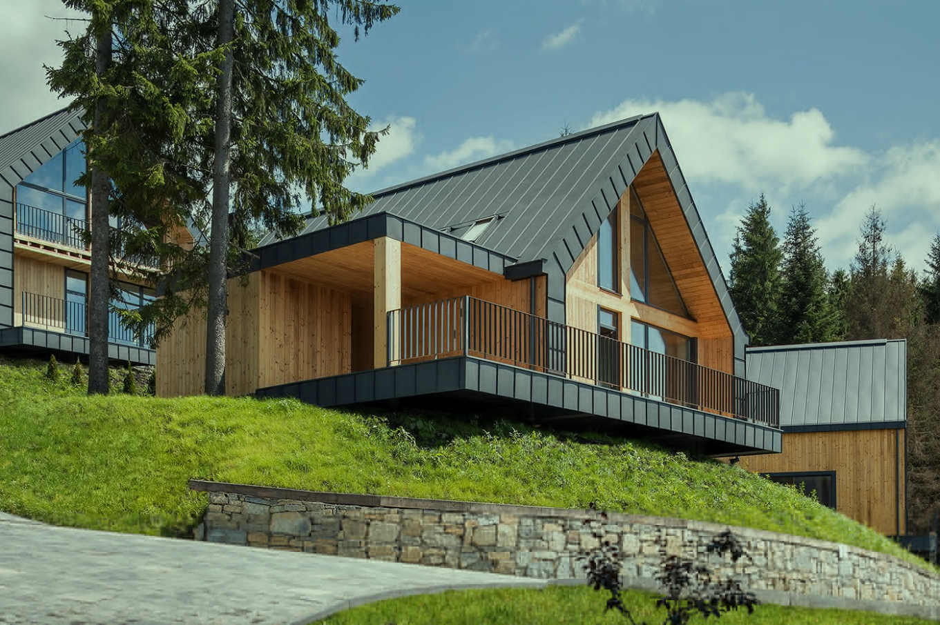 大面積窗戶:在木屋的設計中,采用大面積的窗戶設計,將周圍的自然美景引入室內(nèi)。這不僅可以讓居住者隨時欣賞到美景,還能增加室內(nèi)的采光和通風效果。