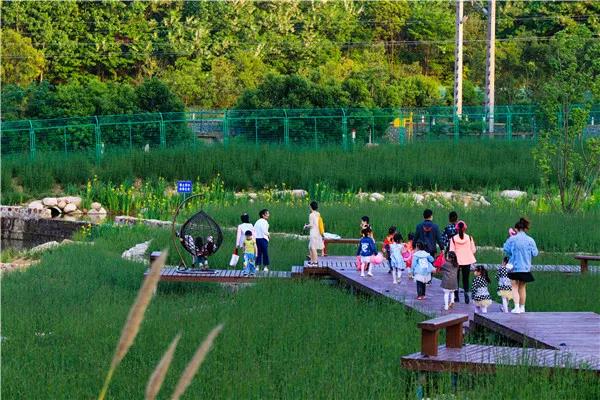 而今,父母帶著孩子們花海中的帳篷噙香而眠,在水域捕魚(yú)捉蝦,在郊野體驗(yàn)極致運(yùn)動(dòng),在稻田采摘喂養(yǎng),站在山上看潑河水庫(kù)波光淋漓,散落的豫南民居炊煙裊裊。依然樸實(shí)而美好。