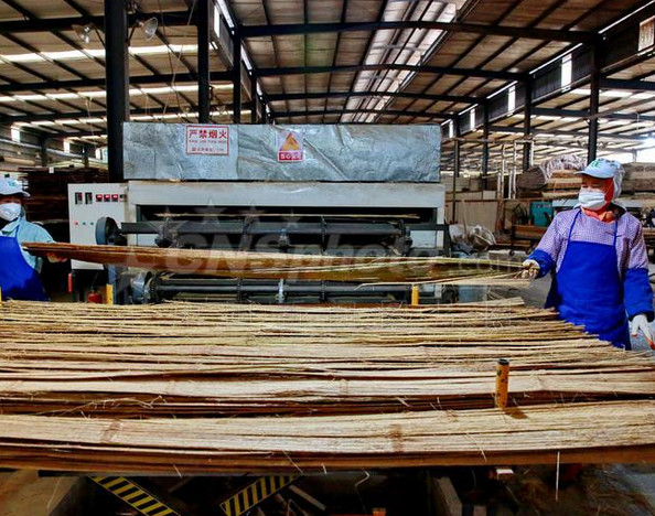 利用設(shè)備壓制成竹片▽