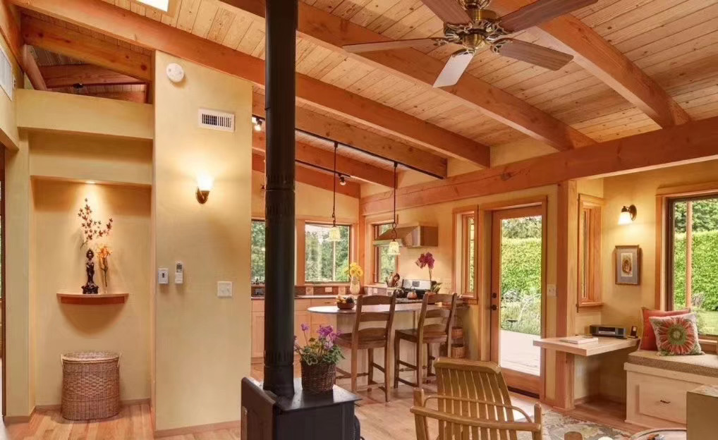 木材作為一種材料不僅顯示了其建筑藝術的潛能,而且使建筑成為居家,工作學習和運動健康和溫馨的地方。由于木材的溫馨和自然屬性,它可以使人創(chuàng)造出積極的情緒。有證據(jù)顯示它可以使人產(chǎn)生康樂安寧的總體感覺。在辦公室里,它能提高工作成績和增加生產(chǎn)效率。在醫(yī)院,它對患者的恢復起著積極的影響作用。由于最小可能地聚集灰塵和細菌,河南木屋木地板創(chuàng)造出了較好的空氣質(zhì)量。通常的清掃,拖地和吸塵使室內(nèi)不會產(chǎn)生過敏現(xiàn)象。用于外墻板,梁和擱柵的工程木制品是由膠制成的,不會產(chǎn)生過敏。用于制作家具和廚具的密度板制品經(jīng)過改進后甲醛的釋放,從1980級減少了80%—90%。河南木屋膠制結構木制品使用了粘合劑,有害氣體的釋放甚至更低。木材可調(diào)節(jié)室內(nèi)的空氣濕度使建筑更舒適。在高濕度期間,它吸收水分;在干燥期間,它向空氣中釋放水分。研究發(fā)現(xiàn),在一個傳統(tǒng)的加拿大家庭里,河南木屋室內(nèi)的木板可以把最高的空氣濕度降低到10%—25%。減少了對空調(diào)和通風的需要,使生活更加舒適。